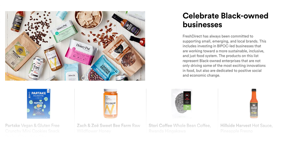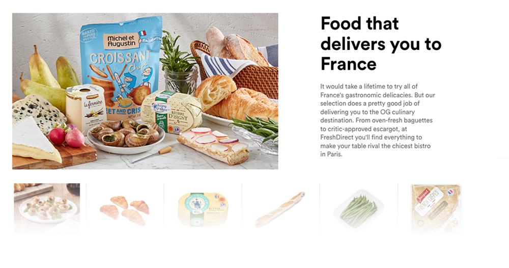 Without a physical storefront to encourage browsing, FreshDirect has adapted its communications strategies toward a more editorialized online presentation, positioning itself as a virtual marketplace for the latest food offerings. These website modules are displayed according to current trends, occasions, and customer behaviors. Each is written and designed to capture the feeling of discovery inherent to a well-curated grocery store.