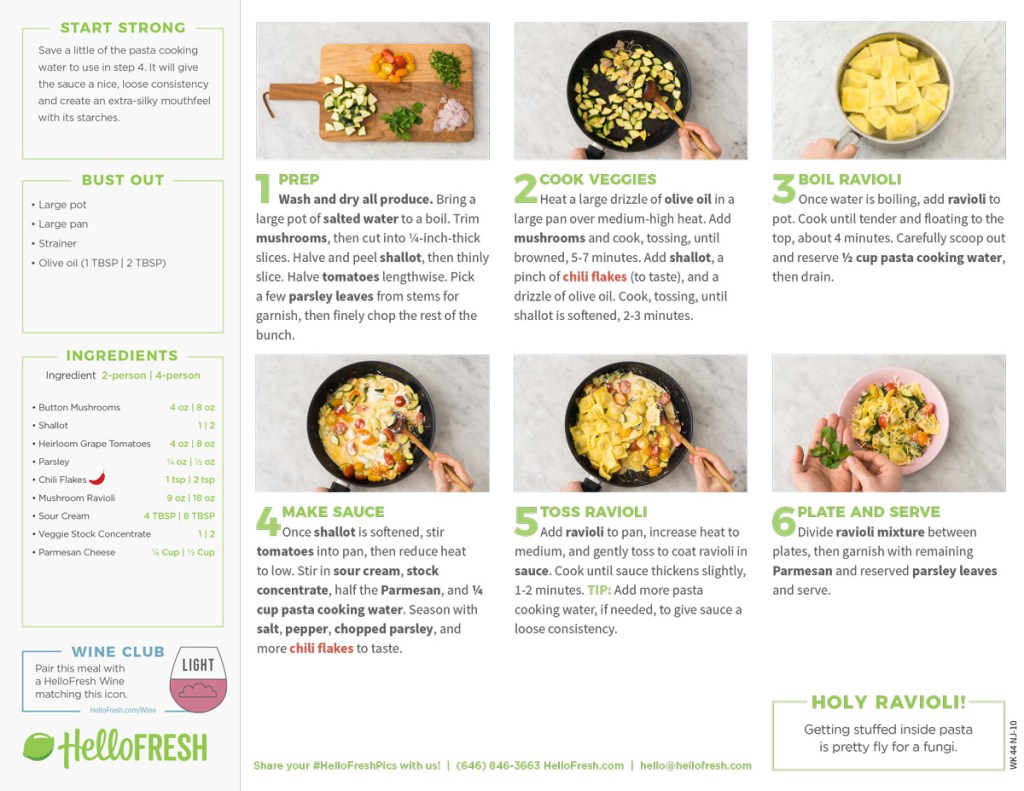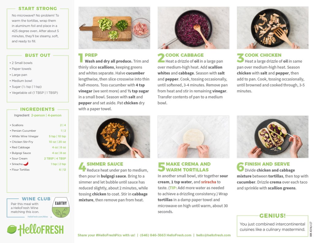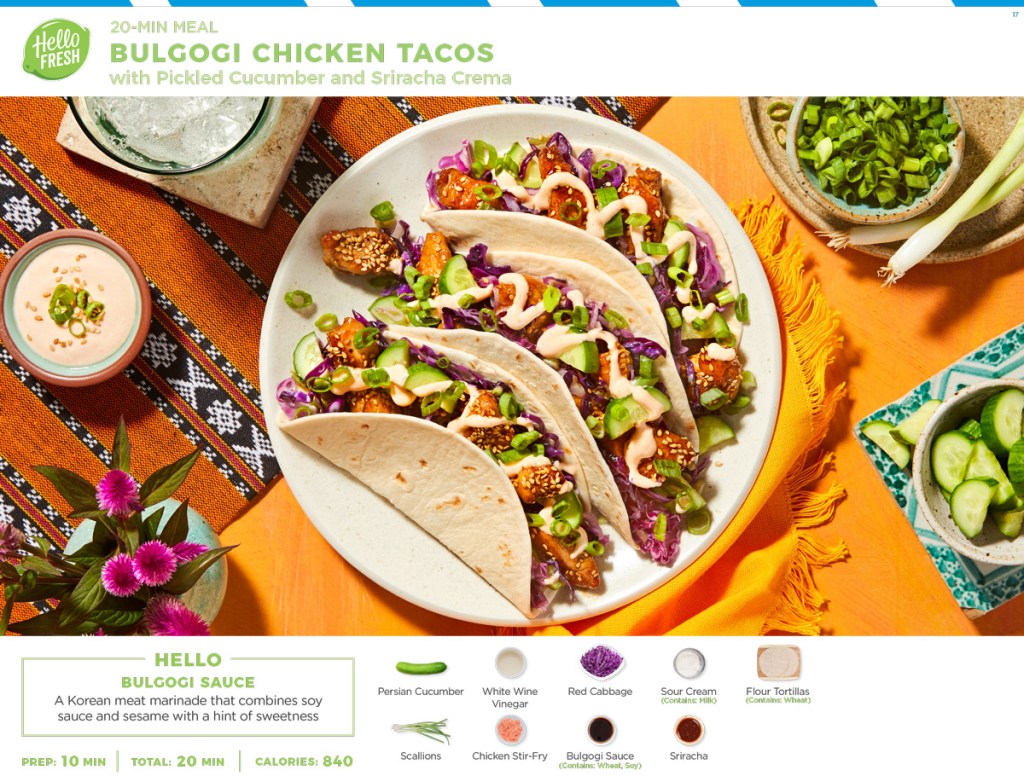 HelloFresh meal kit recipe cards